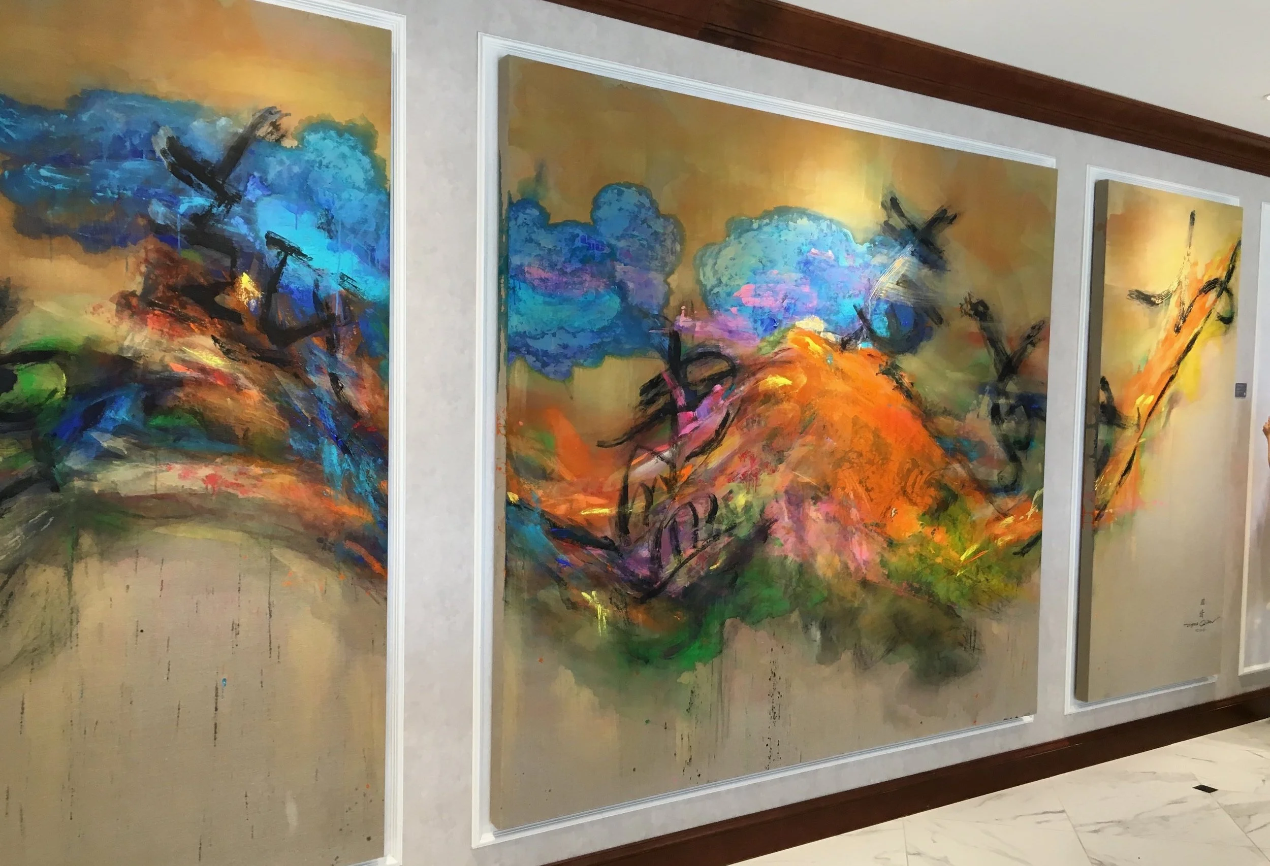 These 3 pieces painting artworks has created as commissioned by the UOB Family Founder & Chairman.