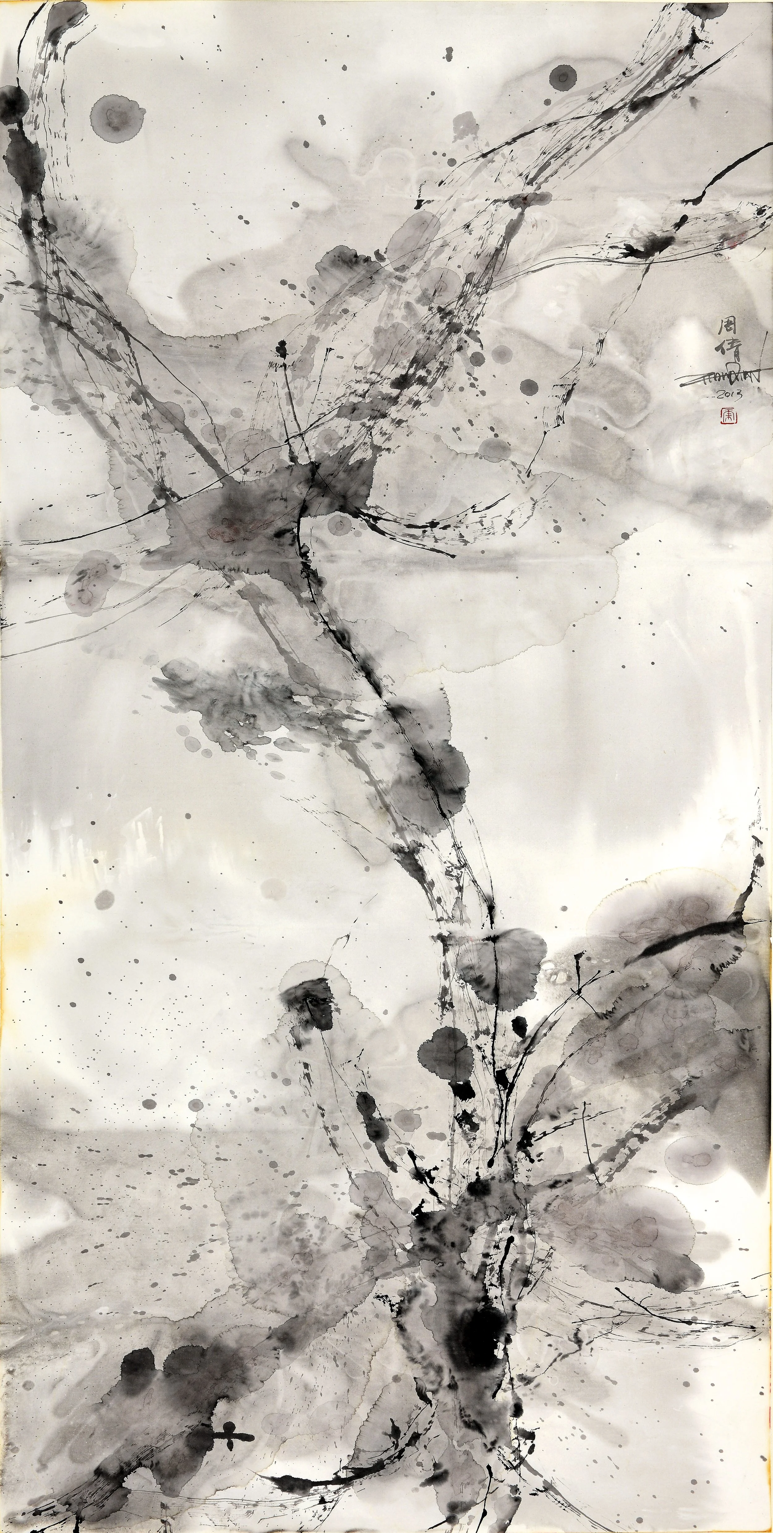 Up 6 2013 Acrylic and ink on paper 54.3 x 27.6 inches (138x70cm) Exhibit at Montparnasse Museum Paris 2013