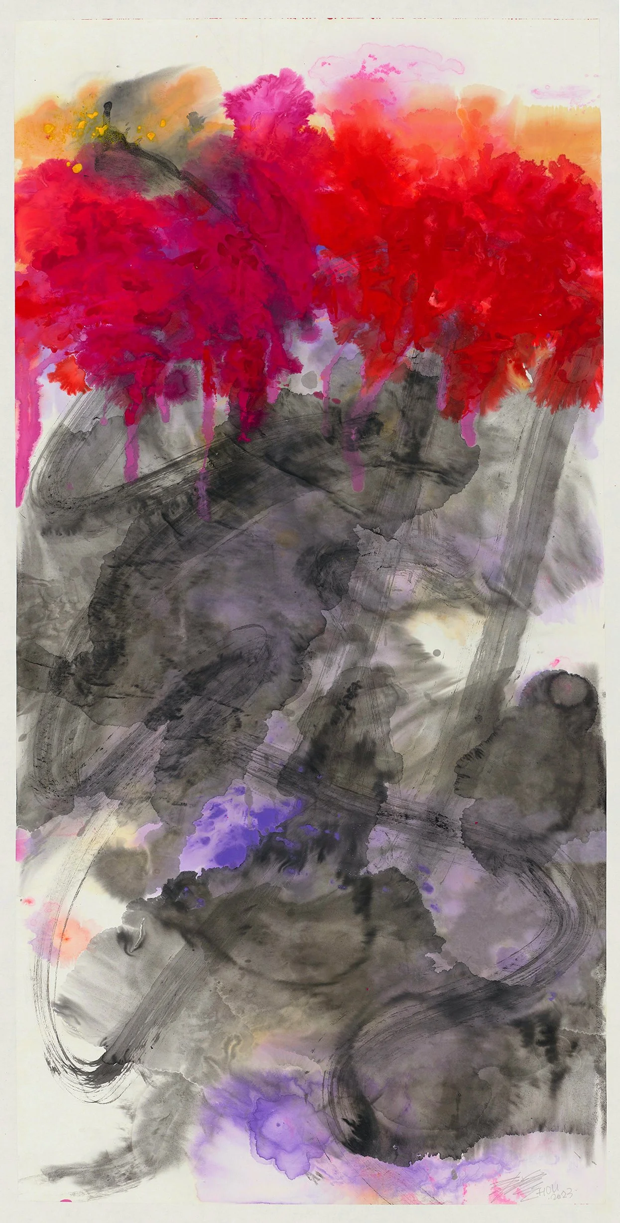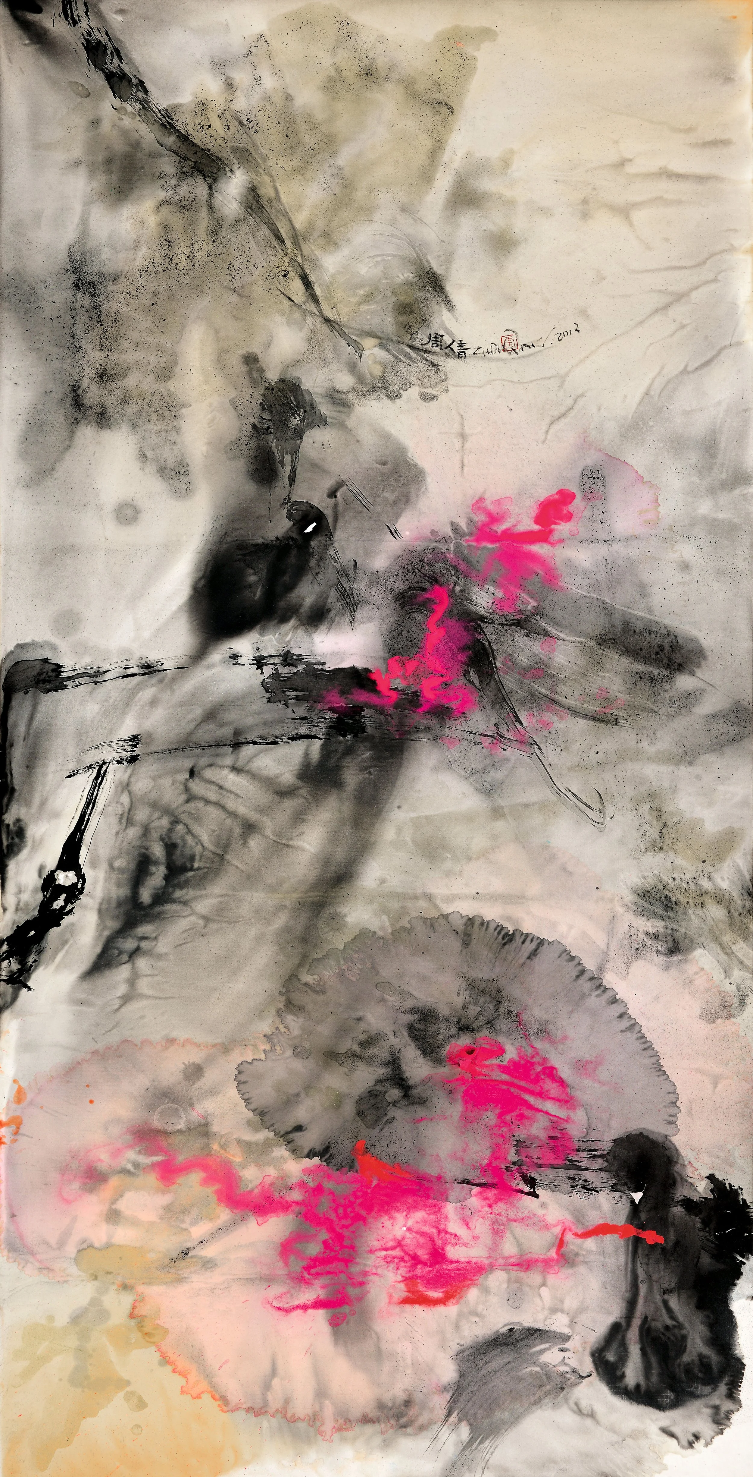 Blooming 2013 Acrylic and ink on paper 54.3 x 27.6 inches (138x70cm) Exhibit at Montparnasse Museum Paris 2013